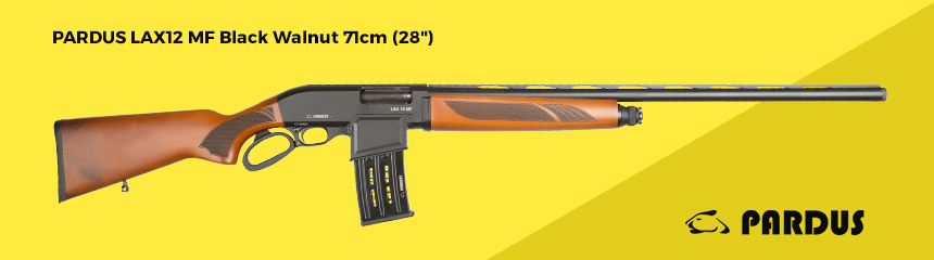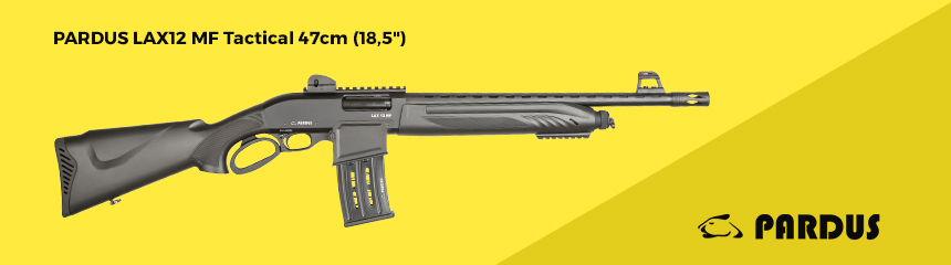 Pardus LAX MF is the magazine fed version of LAX system where there are 2, 5 and 10 rds size magazines. The receiver design is set to accept a lower trigger group and magazine housing part. This system comes only in standard stock as the lever arm uses stock grip area and a tactical stock version is not available at the moment. There can be different barrel lengths as well chokes. The barrel can come with a top rib or different sight sets. The shotgun can carry on tactical options with a railed forend, heat shield, picatinny rail, ghost ring sight set, flash hider. There are optional finihes with different receiver colores, marine finish, cerakote and camo coating options.